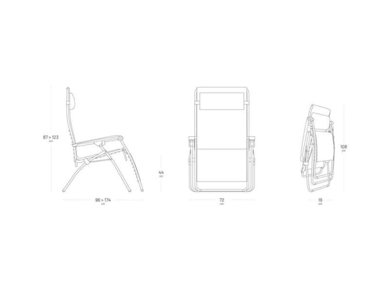Entscheiden Sie sich für großzügigen Komfort, mit diesem XL-Format des Sessels RSXA CLIP, das länger und breiter ist als die Standardversion.Der Relaxsessel RSXA CLIP XL ist ein klassisches und zeitloses Modell, das aus hochwertigen Materialien hergestellt wird. Leicht und klappbar, robust und praktisch: einfach der perfekte Begleiter für entspannende Momente im Freien. Die ergonomische Rückenlehne bietet festen Komfort und eine sehr gute Rückenstützung dank der Clip-Befestigungen, die bis auf Schulterhöhe reichen. Ergonomische, verstellbare und abnehmbare Kopfstütze, die Sie für maximalen Komfort perfekt einstellen können.