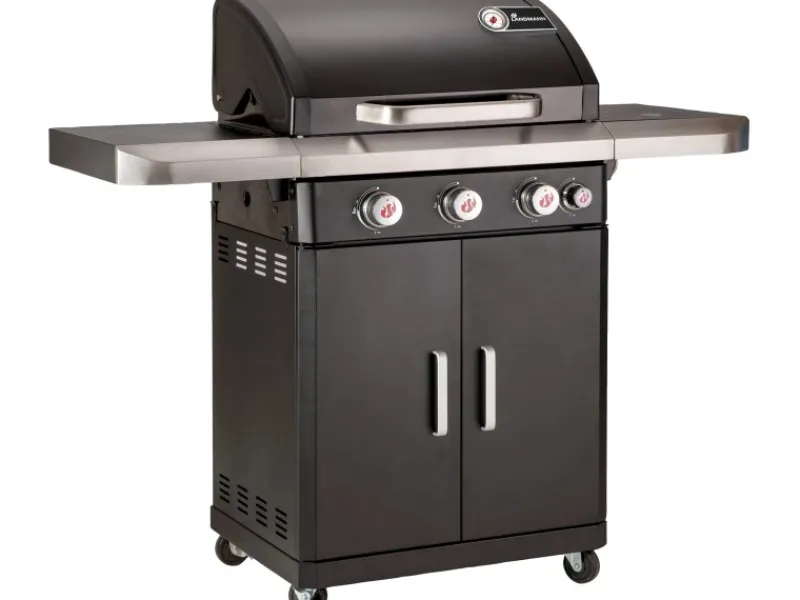 Leistungsstarker Gasgrill mit drei Brennern und zusätzlichem Seitenbrenner