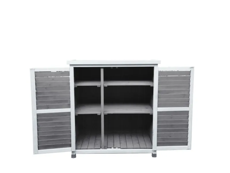 Funktionaler Gartenschrank im Vintage-Look mit zahlreichen Lagerungs- und Ablagemöglichkeiten für Polsterauflagen, Gartengeräte etc.