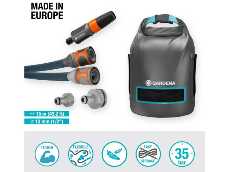 – 10 m langer Textilschlauch mit einem Durchmesser von 13 mm (1/2″)