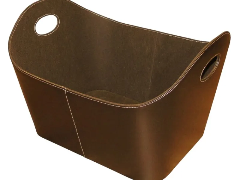 Der Kunstlederkorb in eckiger Ausführung ist praktisch und äußerst robust. Nutzen Sie ihn als Tragekorb für Holz, Zeitungen, Wäsche oder zahlreiche weitere Gegenstände. Ausgestattet ist der aus braunen Kunstleder und Vlies gefertigte Korb mit zwei Grifflöchern.