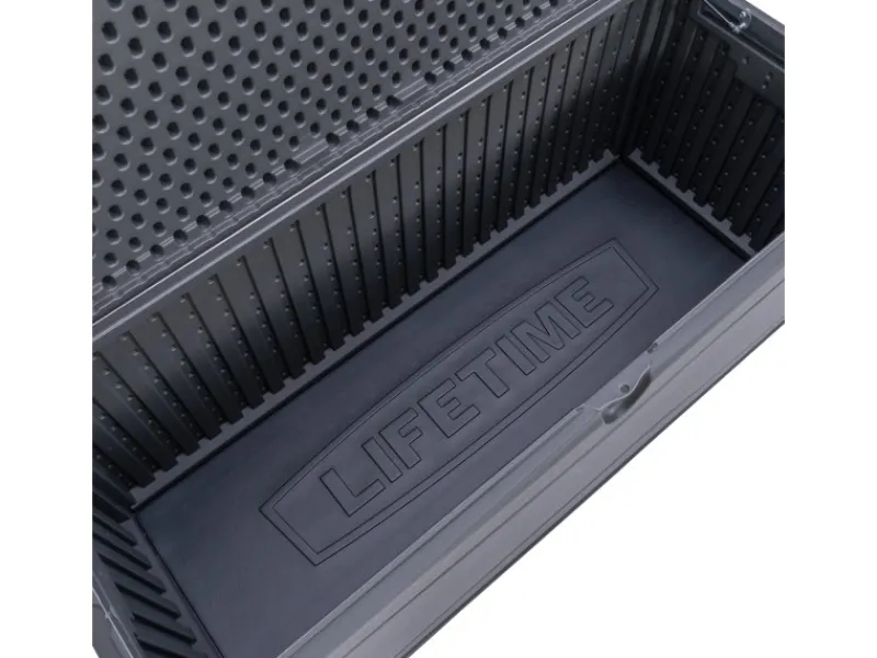 Die Aufbewahrungsbox ist aus Polyethylen-Kunststoff in aufwendiger Wabentechnik gebaut. Die doppelwandige, 26 mm starke Konstruktion verstärkt Wände als auch Deckel und macht sie besonders stabil. Die Gartenbox ist bis 300 kg belastbar und kann auch als zusätzliche Sitzbank im Garten oder Hof und auch beispielsweise als Anrichte für ein Buffet bei einem gemütlichen Grillabend genutzt werden.