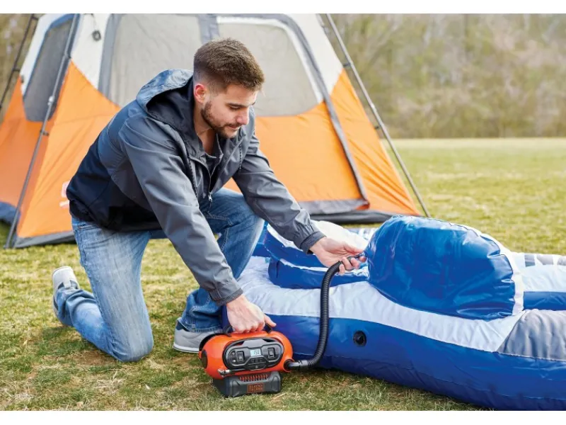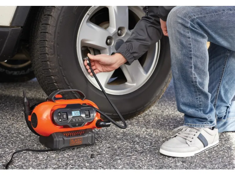 Mit dem 12 V Anschluss oder dem Akkubetrieb ist der Black+Decker Kompressor ein idealer Begleiter beim Wassersport, Camping und Freizeit. Er bietet Ihnen sowohl mit der Automatik-Abschaltung bei Erreichen des vorgewählten Drucks, als auch mit dem beleuchteten, leicht ablesbaren Digital-Display den maximalen Bedienkomfort.