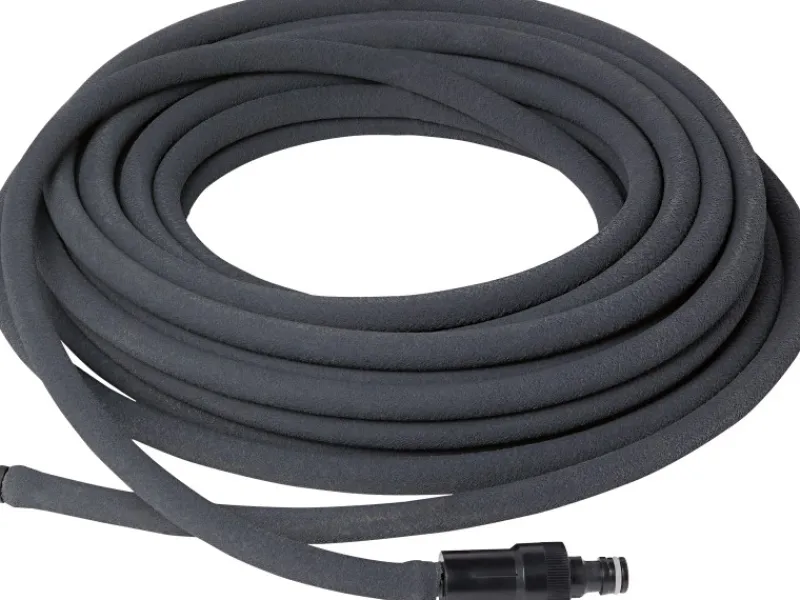 Durch den gezielten Einsatz des Perlschlauchs wird das Wasser direkt an die Wurzeln gebracht, wodurch Verdunstung minimiert wird. Der sich eigenständig entleerende Schlauch schützt darüber hinaus vor einem Frostbruch. Der Arbeitsdruck sollte idealerweise bei 1 bar bis 3 bar liegen – der Berstdruck liegt bei 6 bar. Der mitgelieferte Druckminderer trägt dafür Sorge, dass der Arbeitsdruck im Perlschlauch auf 2,5 – max. 3 Bar reguliert wird, abhängig vom jeweiligen Eingangsdruck Ihrer Wasserleitung. Er bietet eine Temperaturbeständigkeit von -10° bis +50° C. Der Schlauch ist mit allen gängigen Stecksystemen kombinierbar.