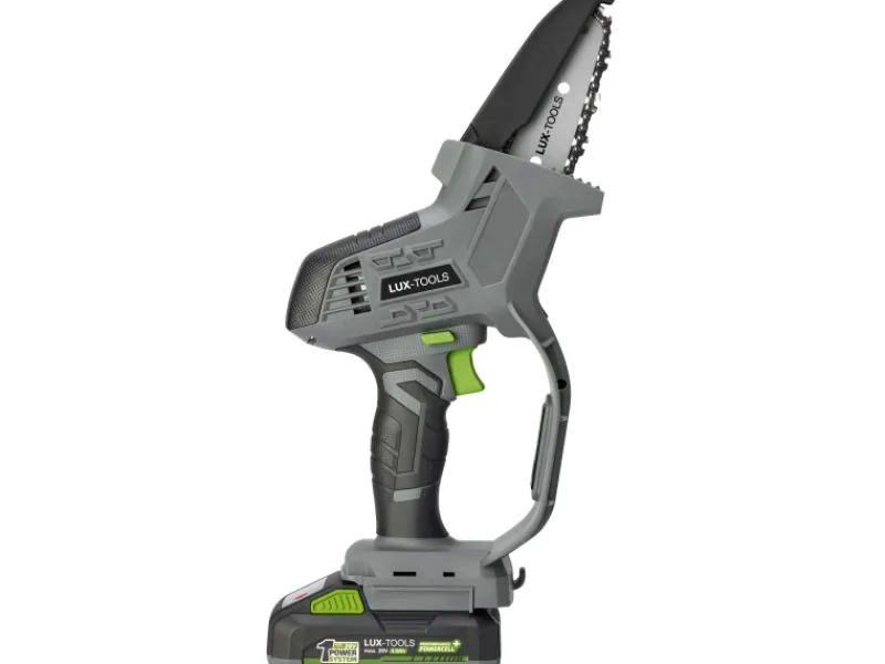 Optimiere deine Gartenarbeit mit der LUX-TOOLS Akku-Astsäge A-EAS-20/100, die Teil des flexiblen LUX-TOOLS 20 V Power System ist. Diese Astsäge liefert eine Ausgangsleistung von 600 W und ist für einen schnellen Schnitt von bis zu 5,6 m/s konzipiert, was sie ideal für das mühelose Kürzen von Ästen macht. Dank des automatischen Kettenschmiersystems und des Kettenöl-Kontrollfensters behältst du den Überblick und sorgst für eine reibungslose Funktion deiner Säge.