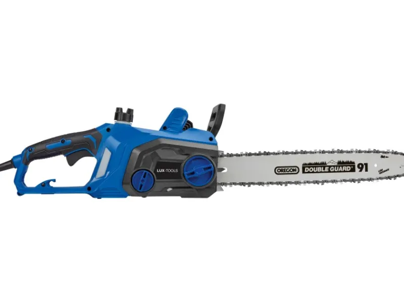 Die LUX-TOOLS Elektro-Kettensäge E-KS-2000/405 ist dein leistungsstarker Partner für vielfältige Sägearbeiten rund um Haus und Garten. Sie bietet dir kraftvolle Schnitte und hohe Sicherheit für deine Holzarbeiten. Mit ihrem durchzugsstarken Motor mit einer Leistung von 2.000 Watt und ihrer Schwertlänge von 40,6 cm meisterst du mühelos das Zerkleinern von Brennholz, das Entasten von Bäumen und andere Holzzuschnitte.
