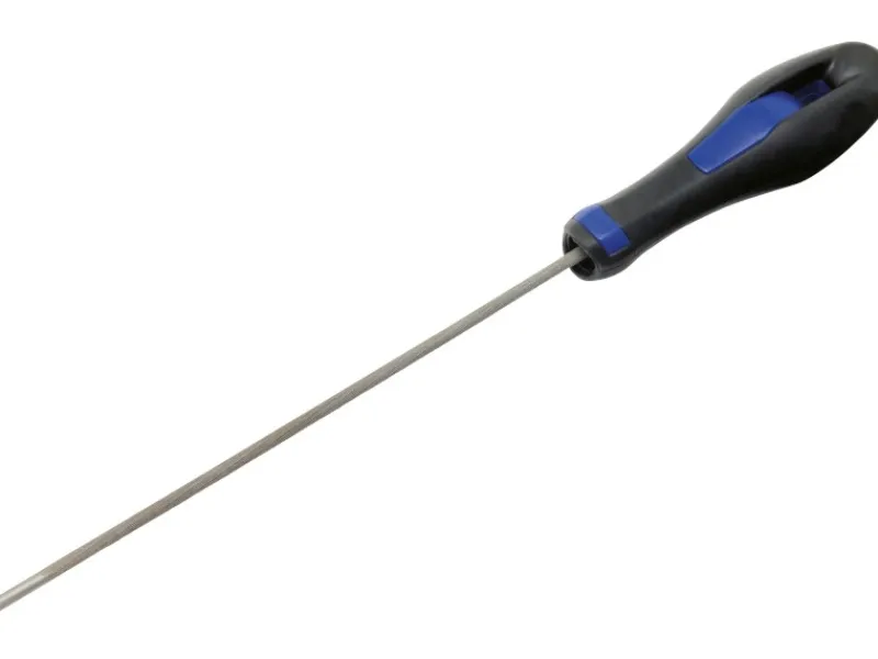 Die LUX-TOOLS Kettensägefeile mit Hieb 3 (fein), einer Länge von 200 mm und einem Ø von 4,5 mm ist besonders geeignet zum Schärfen von Kettensägen und ist mit einem ergonomischen 2-Komponenten Griff ausgestattet.