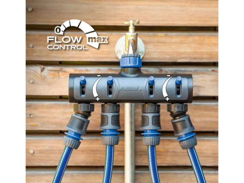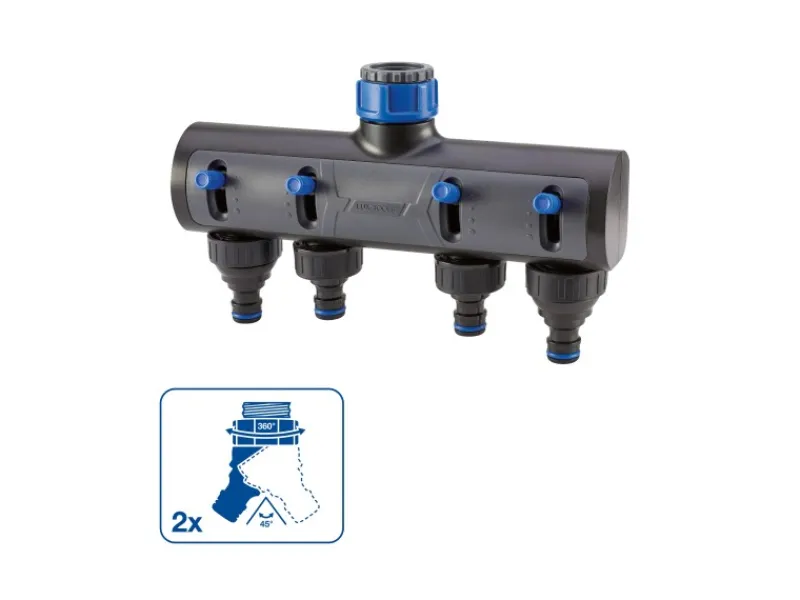 Zum gleichzeitigen Anschluss von vier Gartenschläuchen