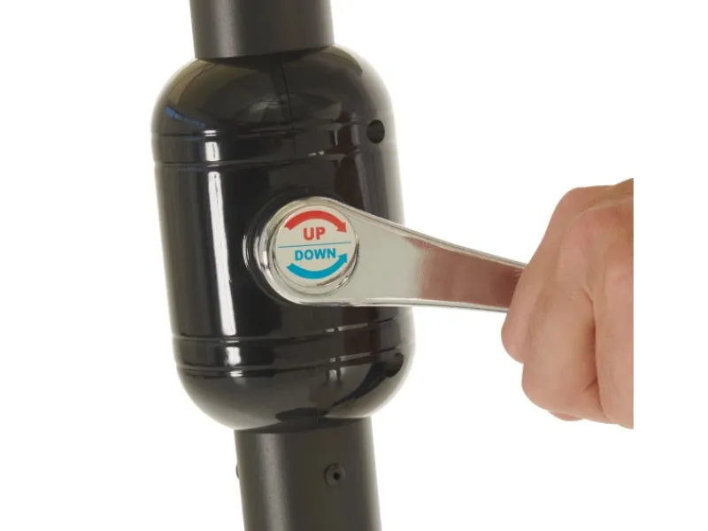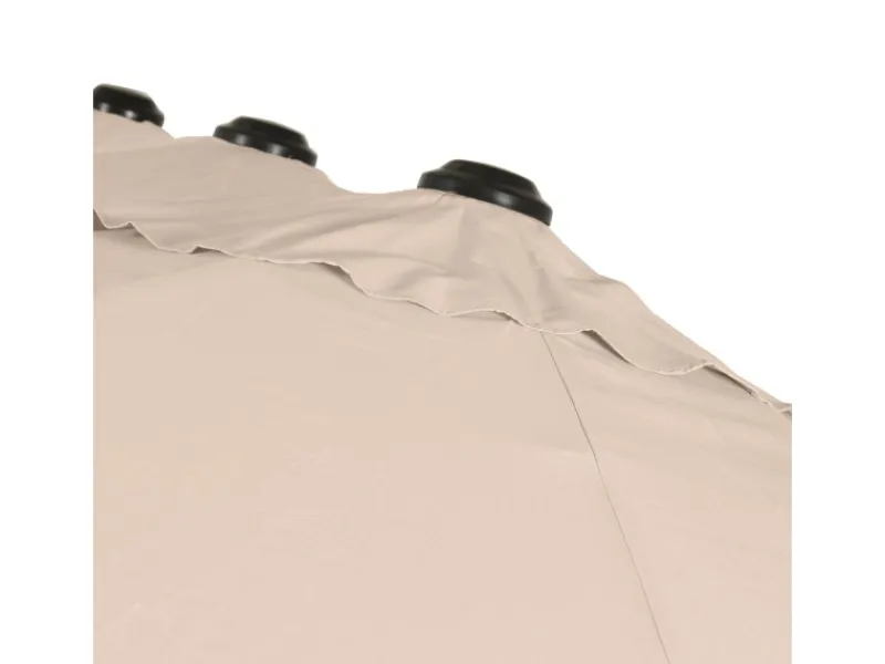 Aufgespannt hat der Gartenschirm eine Größe von 270 cm in der Breite und 460 cm in der Tiefe. Die maximale Höhe des Sonnenschirms beträgt 245 cm und bietet dadurch eine sehr große Schattenfläche. Außerdem ist der Schirm durch die manuelle Kurbelmechanik einfach in der Bedienung.