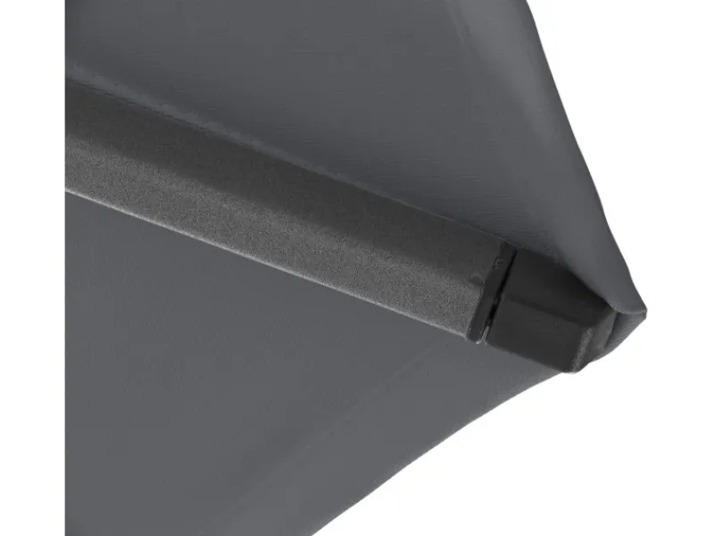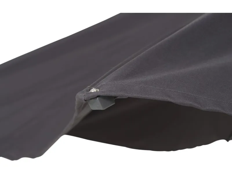 Der Mast und die Streben des Schirms sind aus leichtem, aber stabilem Aluminium gefertigt und exzellent verarbeitet. Die widerstandsfähige Bespannung aus 100 % Polyester-Gewebe (220 g/m²) ist robust, abnehmbar und waschbar. Außerdem zeichnet sie sich durch eine gute Lichtechtheit aus, was bedeutet, dass das Material auch bei starker Sonneneinstrahlung nur wenig bis gar nicht ausbleicht. Mit dem Lichtschutzfaktor des Schirms von UV 50 kannst du den Sommer unbeschwert genießen.