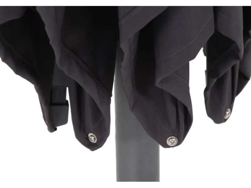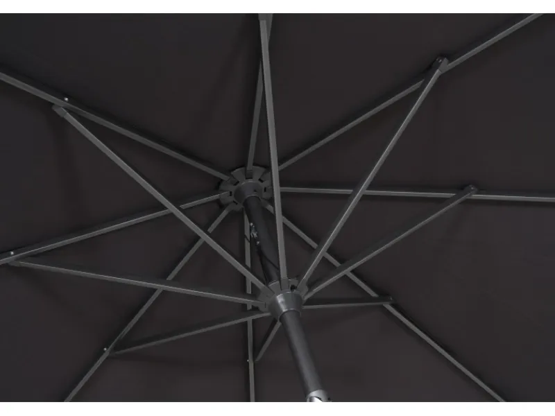 Dank der Kurbelmechanik kannst du den Schirm bequem öffnen und schließen. Aufgespannt besitzt er einen Ø von 250 cm. Die maximale Höhe des Sonnenschirms beträgt 188 cm.