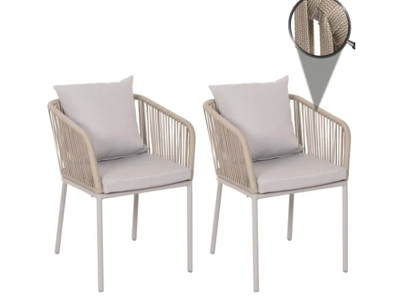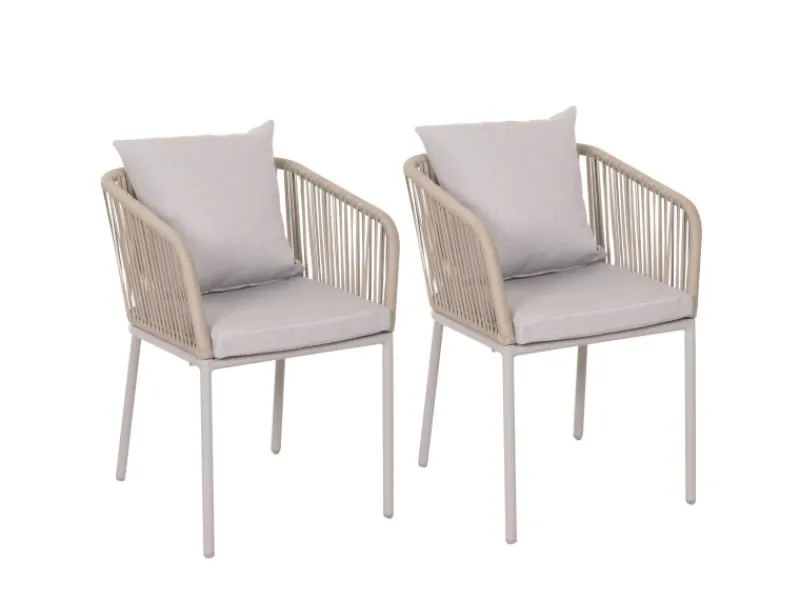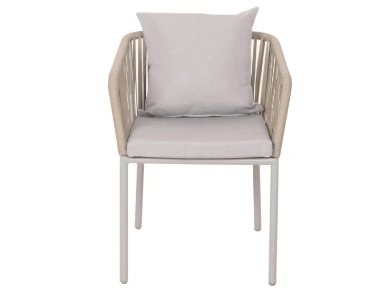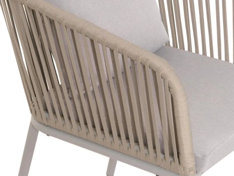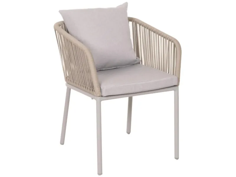 Das sorgfältig ausgewählte Seilgeflecht, bekannt als Rope, ist wetterfest und garantiert eine langlebige Freude an diesem Gartenstuhl, ohne dass Qualität oder Komfort beeinträchtigt werden. Die Integration von hochwertigen Sitzkissen, die im Lieferumfang enthalten sind, hebt den Komfort auf ein neues Niveau. Diese Kissen sind nicht nur bequem, sondern auch praktisch, dank eines wasserabweisenden Bezugs, der auch bei unerwarteten Regenschauern Schutz bietet. Mit einer maximalen Dauerbelastbarkeit von 150 kg je Sitzplatz steht dieser Gartenstuhl für Stabilität und Zuverlässigkeit, wobei er eine einladende Atmosphäre schafft, die zum Verweilen einlädt. Ob Sie einen ruhigen Nachmittag mit einem Buch verbringen oder einen entspannten Abend mit Freunden genießen möchten, der N41 bietet den idealen Ort für unvergessliche Momente im Freien.