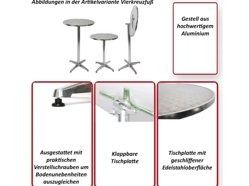 Lieferumfang: 1 x Aluminium Steh- Bistro-Tisch