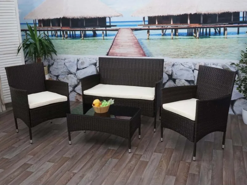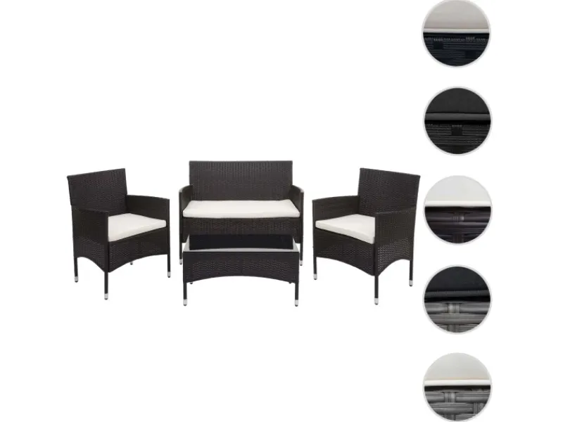 Diese Sitzgarnitur fügt sich durch ihr schlichtes Design nahtlos in jede Umgebung ein und sieht immer aus, als würde sie genau dort hingehören. Durch die Farbkombination der Sitzpolster und des Poly-Rattans, erscheint die Sitzgarnitur in einem ganz besonderen Licht und sorgt somit für ein geschmackvoll abgerundetes Gesamtbild. Alles was Sie zum Entspannen benötigen, kann auf dem Tisch abgelegt werden. Egal ob Prospekte, Sonnencreme, Getränke oder Snacks.