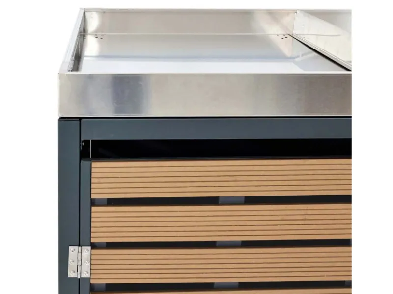 – Diese moderne Mülltonnenverkleidung mit Pflanzkasten ist nicht nur optisch ansprechend. Neben den abschließbaren Türen und dem stabilen Gehäuse, ist der Pflanzkasten mit Ablauflöchern für überflüssiges Wasser ausgestattet.