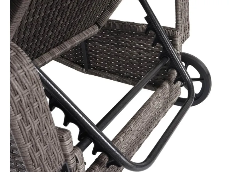 Nicht nur das edle Aussehen überzeugt, auch das qualitativ hochwertige Material Poly-Rattan macht diese Sonnenliege unschlagbar. Poly-Rattan sieht aus wie herkömmliches Rattan, hat aber deutlich mehr Vorteile. Es ist wasserfest und extrem pflegeleicht. Außerdem ist Poly-Rattan extrem widerstandsfähig und neigt nicht zum Fasern.