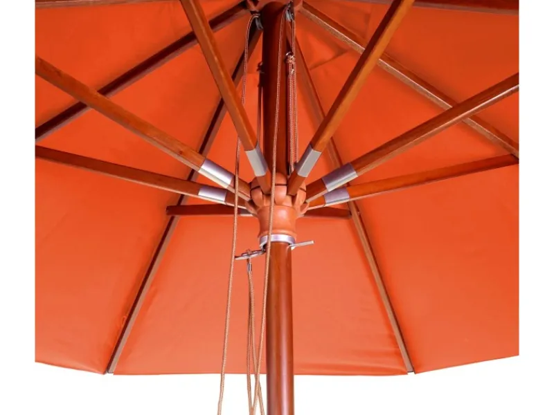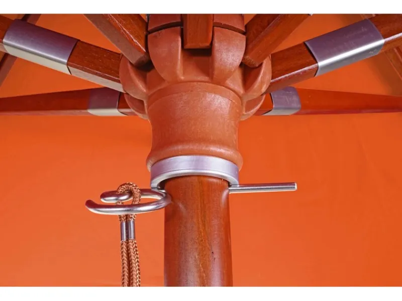Der Schirm muss sich leicht entfalten lassen. KEINE Gewalt oder Kraft anwenden. Auch wenn die Streben des Schirmes extrem verstärkt sind, besteht – wie bei allen Schirmen – die Gefahr, dass die Holzstreben sich verkeilt haben. In diesem Fall bitte vor dem Öffnen unter den Stoff greifen und die Holzstreben wieder korrekt anordnen. Im Anschluss lässt sich der Schirm leicht entfalten.
