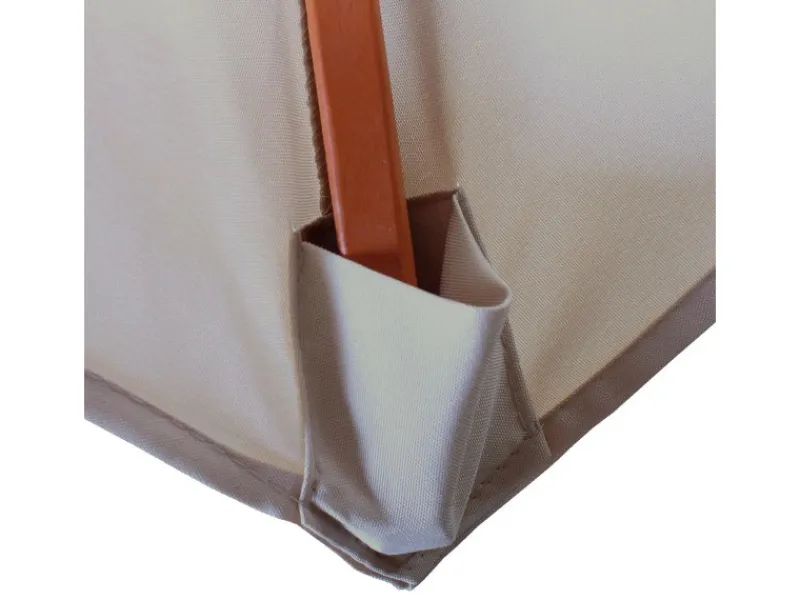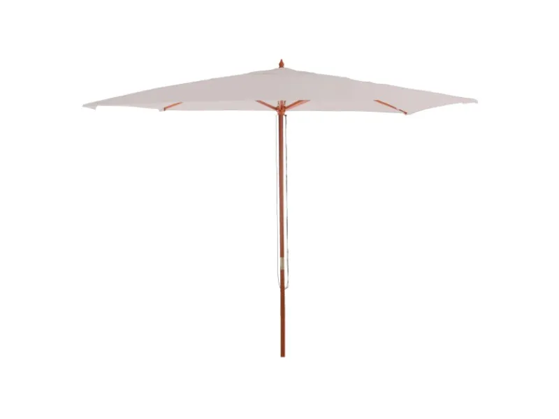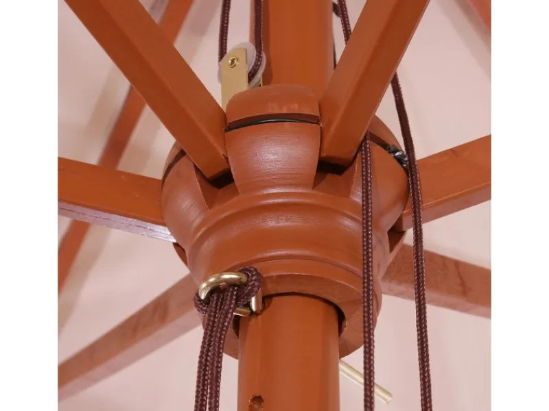 Es besteht – wie bei allen Schirmen – die Gefahr, dass die Holzstreben sich verkeilt haben. In diesem Fall bitte vor dem Öffnen unter den Schirm greifen und die Holzstreben wieder korrekt anordnen. Im Anschluss lässt sich der Schirm leicht entfalten.