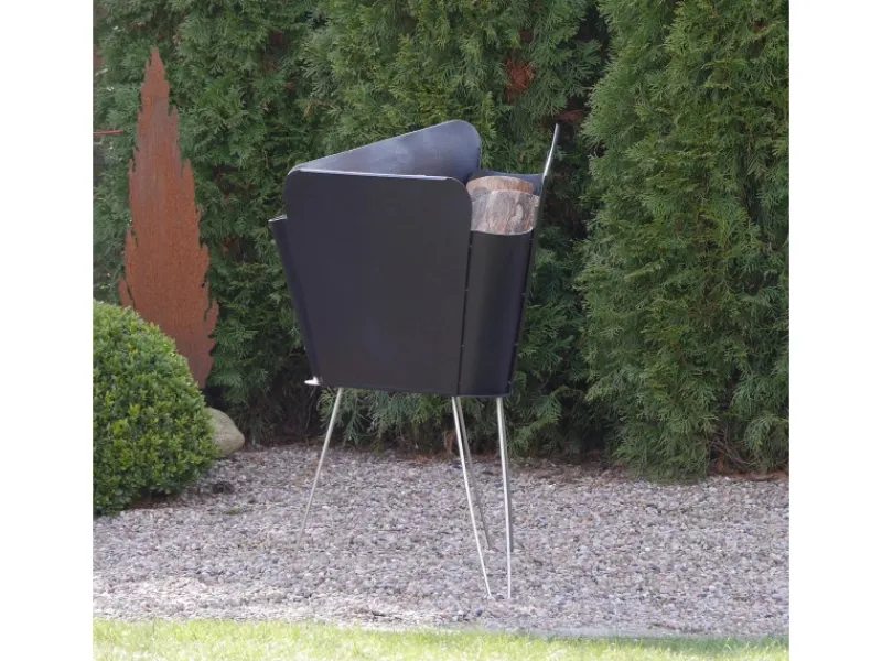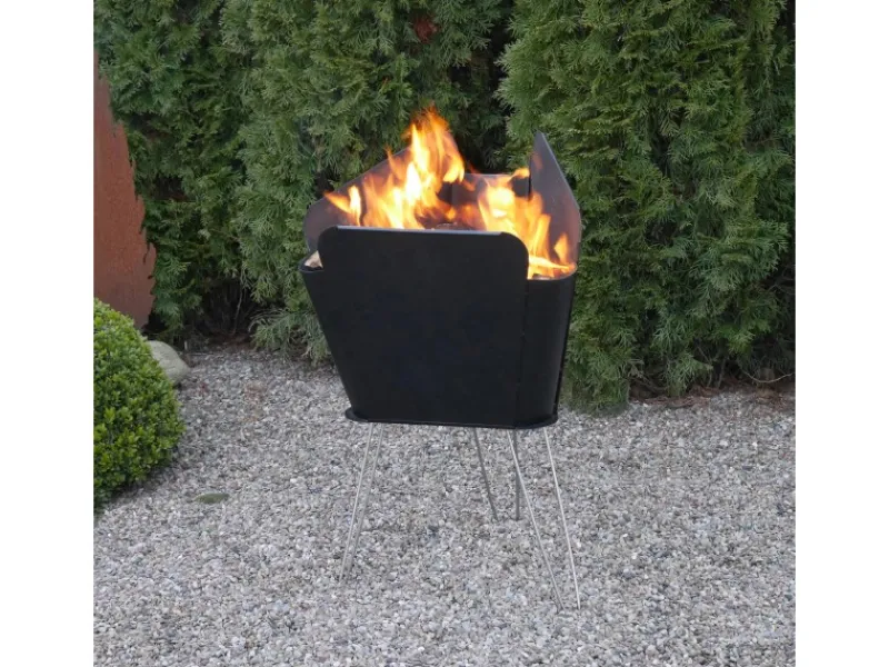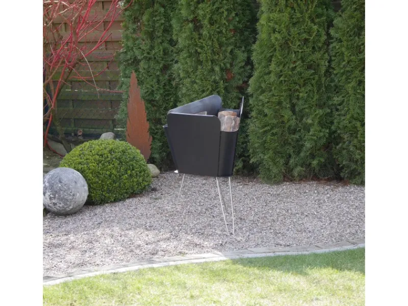 Der Vasner Design Feuerkorb Merive M2 ist das Zubehör schlechthin für jeden, der es sich abends im Garten gemütlich machen und dabei die Wärme eines Kamin Feuers genießen möchte. In puncto Optik sind Sie mit diesem stilvollen Feuerkorb stets bestens beraten. Der pulverbeschichtete Stahl in mattem Schwarz und die Beine aus gebürstetem Edelstahl sind sowohl besonders elegant als auch extra hitzebeständig. Mit seiner mittleren Höhe passt dieser Feuerkorb ideal zu normalhohen Stühlen oder z.B. Bierzeltgarnituren. Auch in puncto Sicherheit hat dieser Feuerkorb viel zu bieten, die Seitenwände und der Boden sind geschlossen gehalten, damit keine glühenden Holz-Stücke herausfallen und ungewollte Brände verursachen können. Klassische Modelle sind im Gegensatz zu diesem geschlossenen Feuerkorb in der Regel aus Gitterstäben geformt. Der Vasner Merive M2 ist dank seiner geschlossenen Konstruktion viel weniger anfällig für Funkenflug, außerdem hinterlässt er keine Brandlöcher im Rasen oder Rußflecken auf der Terrasse. Freuen Sie sich auf Ihren perfekten Feuerkorb, den Sie nach der Lieferung binnen weniger Minuten zusammenbauen und direkt in Gebrauch nehmen können. Dafür müssen lediglich die Edelstahl-Beine an den Stahl-Korpus angeschraubt werden. Das entsprechende Zubehör für den Zusammenbau ist in der Lieferung mit enthalten.Achtung! Zum Entzünden des Feuers dürfen KEINE flüssigen Brandbeschleuniger (z.B. Spiritus, Benzin o.ä.) eingesetzt werden! Die deutlich höheren Temperaturen können Schäden an der Pulverbeschichtung des Feuerkorbes zur Folge haben.Feuerschalen und Feuerkörbe entwickeln große Hitze. Achten Sie daher darauf, dass diese in alle Richtungen genügend Abstand zu brennbaren Materialien haben und der Untergrund des Aufstellortes für größere Hitze geeignet ist, damit kein Schaden entsteht!Ausstattungsmerkmale:- Mittlere Höhe passend zu normalhohen Stühlen- Maße (H x B x T): 48 cm x 50 cm x 78 cm- Außergewöhnliches, modernes Design- Abgerundete Dreiecks-Form integriert sich auch in kleine Räume- Mehr Sicherheit durch geschlossenen Boden- Weniger Funkenflug durch hohe Seitenwände- Hochqualitative Fertigungsmaterialien- Extra robuster Korpus aus pulverbeschichtetem Stahl- Stabile Beine aus gebürstetem Edelstahl- Geringes Gewicht: 5,7 kg- Blitzschnelle MontageLieferumfang:1 x VASNER Merive M2 Feuerkorb3 x Edelstahl Standbeine1 x Montage Set (Schrauben & Schraubenschlüssel)1 x Bedienungsanleitung