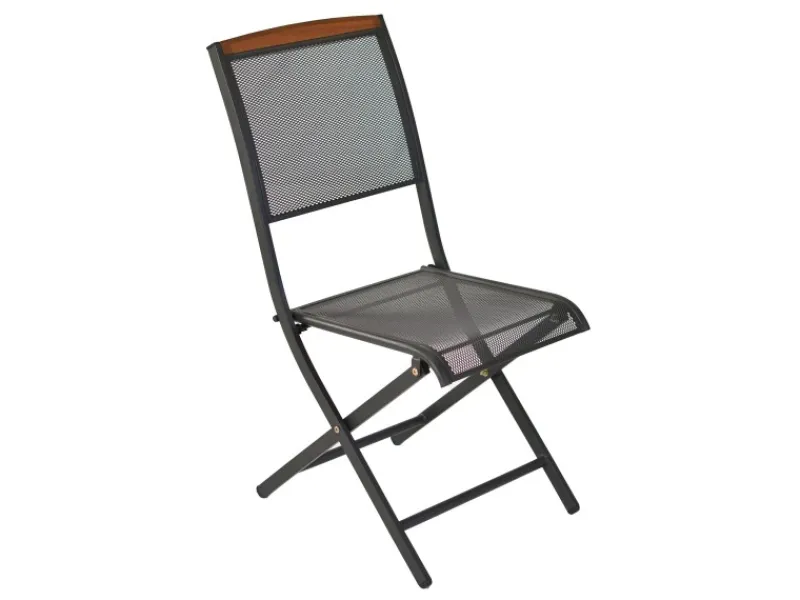 Der Klappstuhl Patmos besteht aus einem pulverbeschichteten Stahlgestell und geölten Akazienholz.