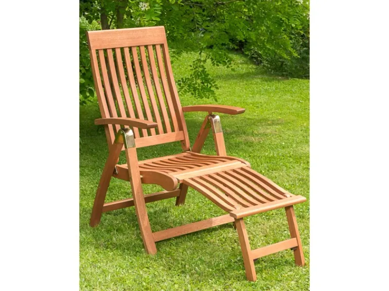 Der hochwertige Klappsessel Comodoro ist 5-fach im Rücken verstellbar. Durch die querstehende Beinkonstruktion und die hochwertigen galvanisierten Beschläge erhält der Sessel ein ansprechendes Design. Die ergonomisch geformte Rücken- und Sitzfläche bieten einen besonders hohen Sitzkomfort. Der Sessel besteht aus einem zertifizierten FSC-Eukalyptusholz, welches mit einem naturbelassenen Öl behandelt wurde. Die Stahlschrauben sind für eine bessere Haltbarkeit galvanisiert.