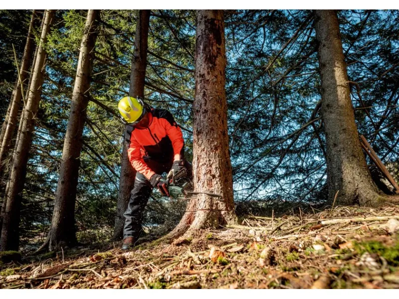 zum Fällen, Entasten, Ablängen und Bauen mit Holz