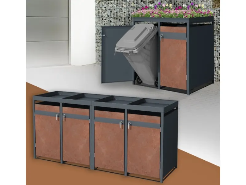 Mülltonnenbox 4er aus Metall (Cortenstahl)