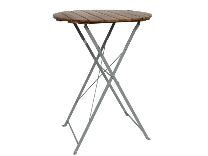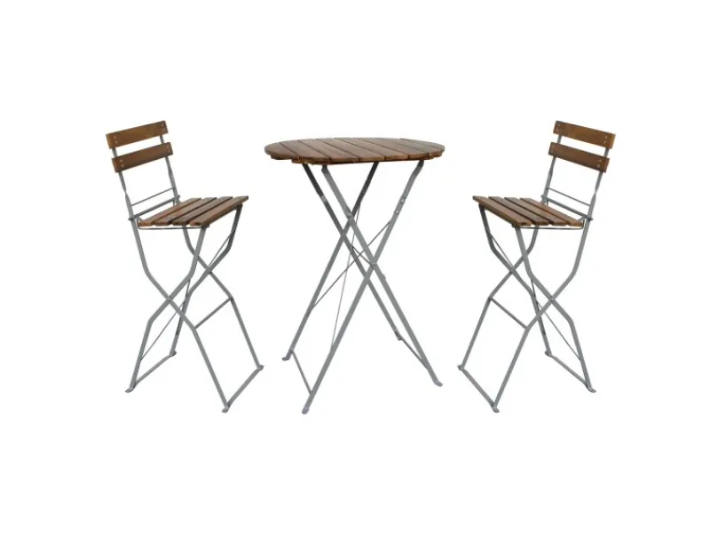 – klappbarer Hochtisch und klappbare Stühle aus robustem Stahl und Akazienholz