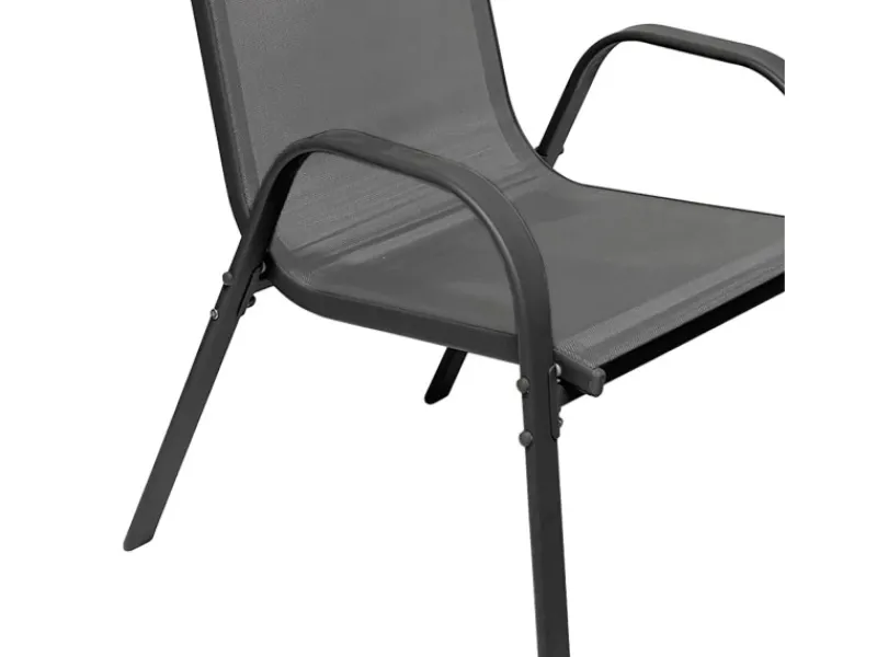 Dank der Stapelbarkeit können Sie mehrere Stühle problemlos verstauen, wenn sie nicht in Gebrauch sind.Fazit:Verleihen Sie Ihrem Außenbereich mit unserem Stapelstuhl aus pulverbeschichtetem Stahl einen modernen Touch.