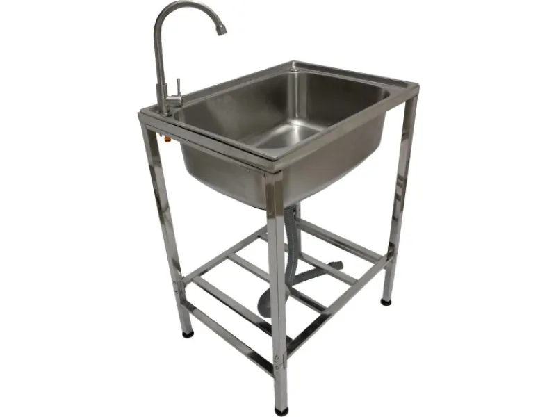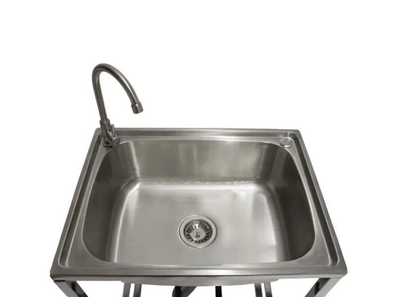 Diese Mehrzweck-Camping-Spüle von MonsterShop ist eine tolle Ergänzung zu Ihrer Outdoor-Küche und bietet Ihnen die Möglichkeit, Ihre Hände und Speisen zu waschen. Die Outdoor-Spüle kann mit einem einfachen Schlauchanschluss an eine Wasserquelle angeschlossen werden.Merkmale: Großes Becken bietet viel Platz zum WaschenVerstellbare Füße1m langes Wasserabflussrohr mit Schlauchschelle360 Grad drehbarer WasserhahnGroße Ablageflächen unter dem Regal zur Aufbewahrung von GeschirrPerfekt für Camping, Glamping und AngelausflügeGRATIS MikrofasertuchSpezifikationen:Material: Edelstahl #304Gewicht: 7,6 kg79cm H x 60cm L x 45cm BInhalt:1x Spülbecken1x Siebstopfen1x schwenkbarer Wasserhahn1x Schlauchanschluss1x 1m Abflussrohr mit Schlauchschelle1x Mikrofasertuch