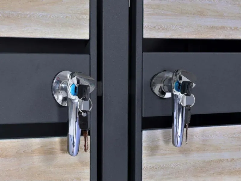 Hinweis: Im Lieferumfang ist ein Schlüssel für das Schloss enthalten. Bitte achte bei der Kombination mehrerer Modelle auf die passende Gesamttiefe. Die Verkleidung ist UV- und wetterbeständig geprüft.
