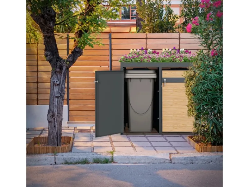 Mülltonnen im Eingangsbereich machen oftmals keine schöne Figur. Mit den praktischen Mülltonnenboxen hast du eine smarte und komfortable Lösung, die unschönen Mülltonnen verschwinden zu lassen. Die Mülltonnenboxen sorgen für Ordnung und bieten zusätzlich noch Schutz vor Fremdeinflüssen. Es passen alle gängigen Mülltonnen von 60 Liter, 120 Liter oder 240 Liter.