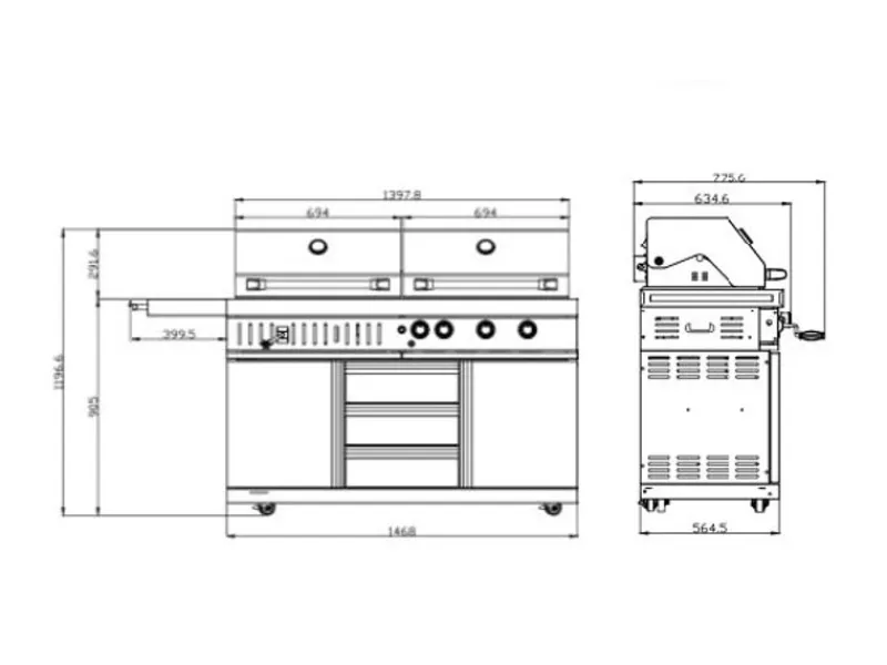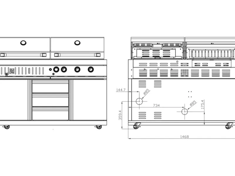 – 2 Grillflächen: 63×46 cm (pro Grill)