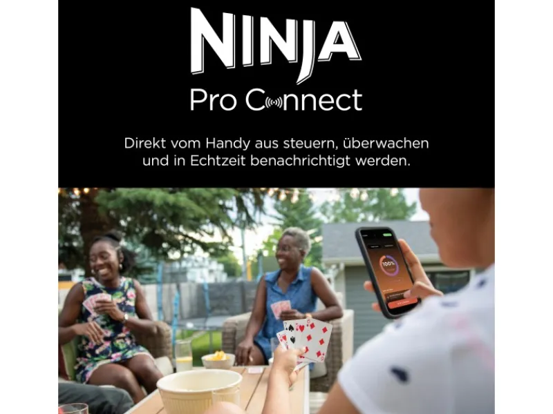 Der integrierte Thermometer sorgt für perfekt gegarte Ergebnisse, sodass kein Rätselraten mehr notwendig ist. Der Ninja Woodfire wird mit Strom betrieben, lässt sich schnell aufheizen und sorgt für ein authentisches Holzfeuer-Aroma.