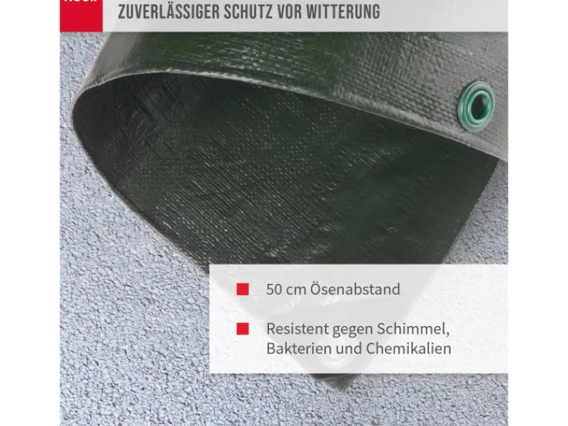 Die Plane ist wasserfest, schimmelresistent und beidseitig beschichtet, was sie zur perfekten Lösung für Bau, Garten, Landwirtschaft, HeimwerkerProjekte, Sport, Camping und vieles mehr macht.