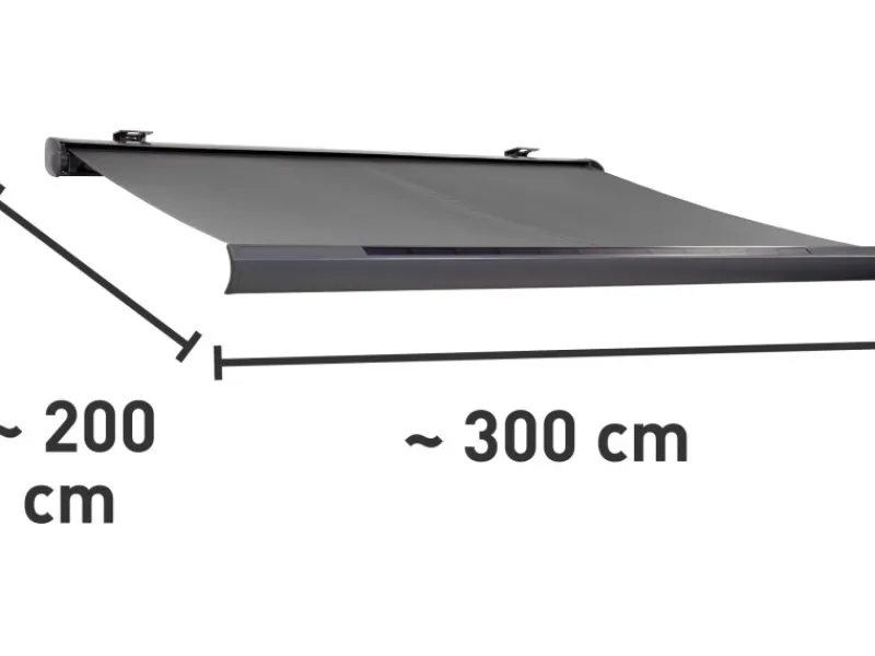 Der Stoff mit einer Größe von 300 cm x 200 cm besteht aus 100 % Polyestergewebe (280 g/m²) und ist durch die PU-Beschichtung wasserabweisend sowie UV-beständig + 30. Somit besticht die Markise stets mit satter, frischer Farbe. Eingezogen lagert das Tuch in einer geschlossenen Kassette und ist dadurch zusätzlich witterungsgeschützt.