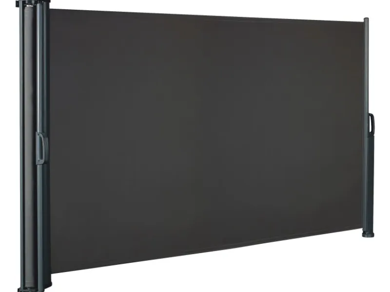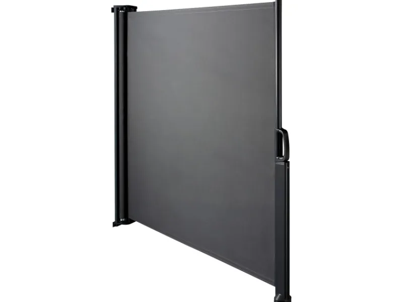 Ihr pulverbeschichtetes Aluminiumgestell in Anthrazit bietet eine hohe Stabilität sowie eine einfache Handhabung, sodass Sie schnell und mit wenigen, einfachen Handgriffen den modernen Sicht- und Windschutz zum Einsatz bringen können. Manuell ausgezogen hat die freistehende Markise bei einem Neigungswinkel von 90° – 180° eine Breite von 300 cm je Seite.
