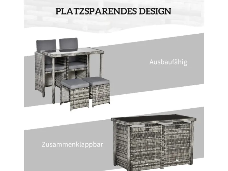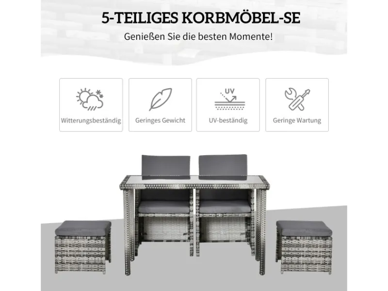 Outsunny Balkonmöbel|Polyrattan Sitzgruppe Essgruppe Garnitur 5 tlg. mit Kissen