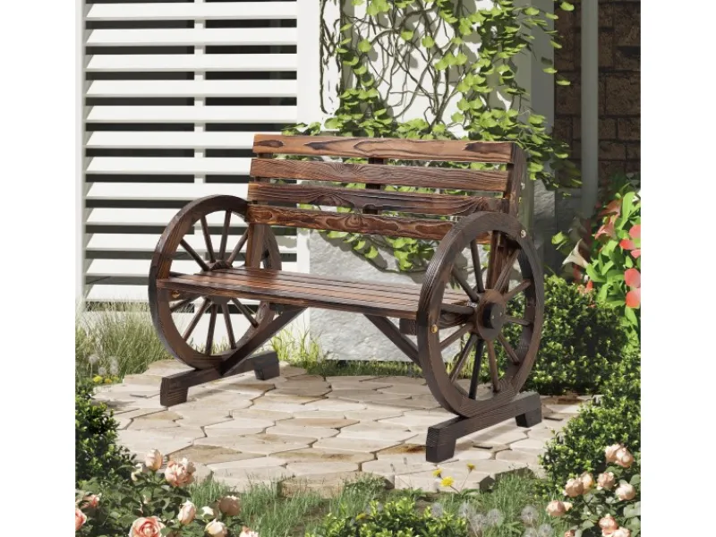 Outsunny Gartenbänke|Gartenbank mit Kutschenrädern Armlehnen und Latten-Flächen