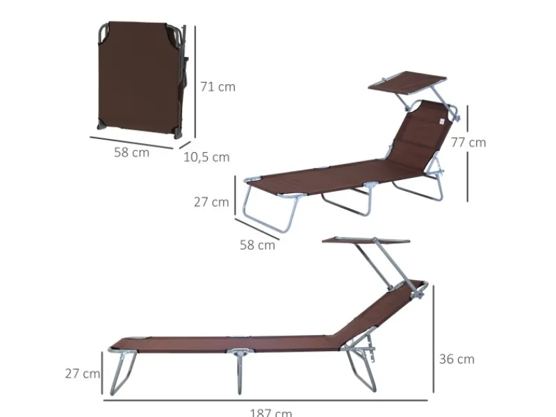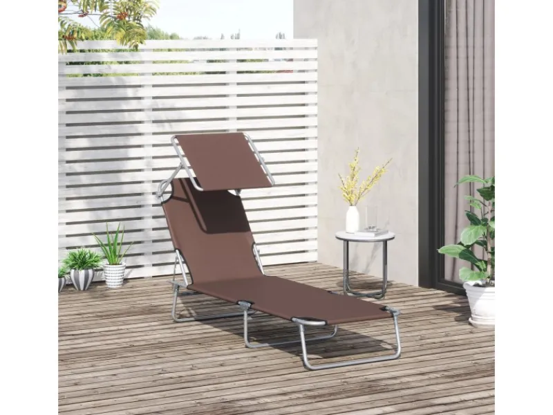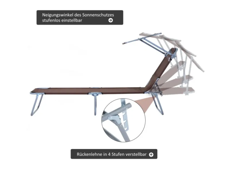 Outsunny Sonnenliegen|Sonnenliege Klappbar Gartenliege mit Dach bis 120 kg Belastbar Braun