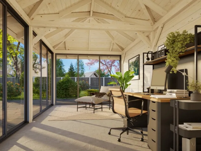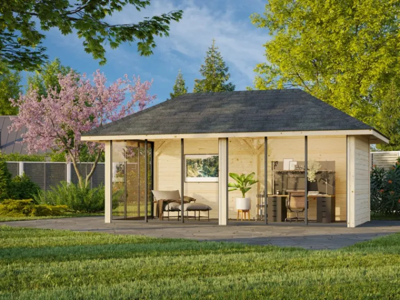 Genießen Sie die ersten Sonnenstrahlen im Frühjahr hinter den geschlossenen Türen, oder nutzen Sie den Pavillon bei schlechtem Wetter, die Möglichkeiten werden Ihnen Freude bereiten. Massive Leimholzpfosten sowie 19 mm Dachbretter bilden die Basis der Pavillons.