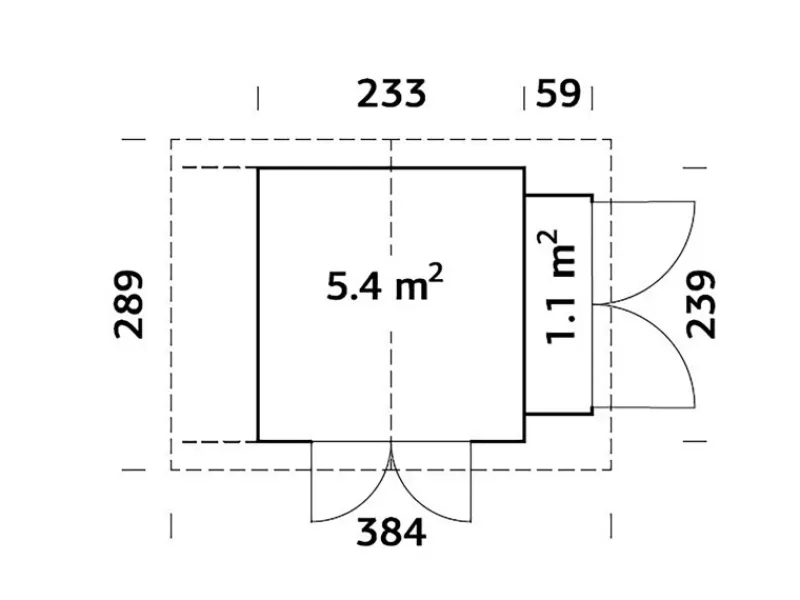 Das Gerätehaus hat eine Doppeltür mit Fenster. Auch der Anbau verfügt über eine Doppeltür, damit bequemer Zugriff auf die untergebrachten Geräte gegeben ist. Die Dachpappe, Schindeln, SBS-Dacheindeckung sowie Regenrinnen können optional bestellt werden. Ab Werk wird das Haus mit einer farbigen Fassade im Farbton hellgrau RAL7042 versehen. Das Innere des Hauses bleibt naturbelassen.