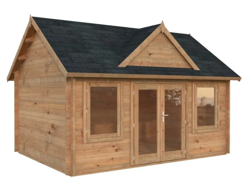 Die Tür- und Fenstersprossen sind inklusive und können auf Wunsch montiert werden. Zum Bausatz gehören imprägnierte Fundamenthölzer, 19 mm Dach- und Fußbodenbretter mit Nut und Feder, Sturmleisten, sowie ein Montage-Set. Das Gartenhaus wurde bereits mit einer Tauchgrundierung versehen und benötigt nach dem Aufbau einen Endanstrich. Die Dacheindeckung ist nicht im Lieferumfang enthalten.