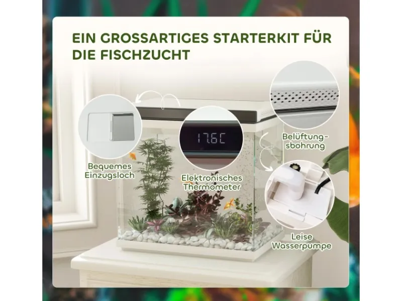 ● Öffnung im Deckel erleichtert das Füttern der Fische