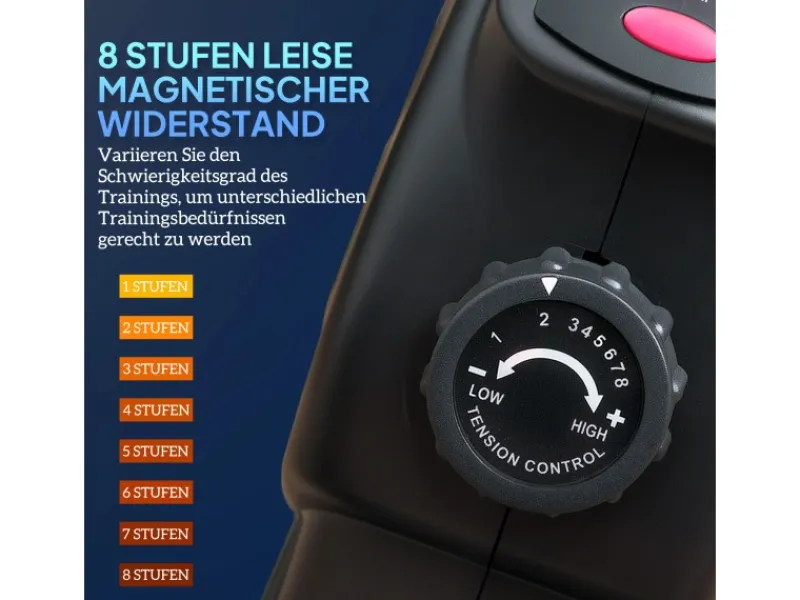 – Acht leise, magnetische Widerstandsstufen des Mini Heimtrainers für sanfte, lautlose Anpassungen
