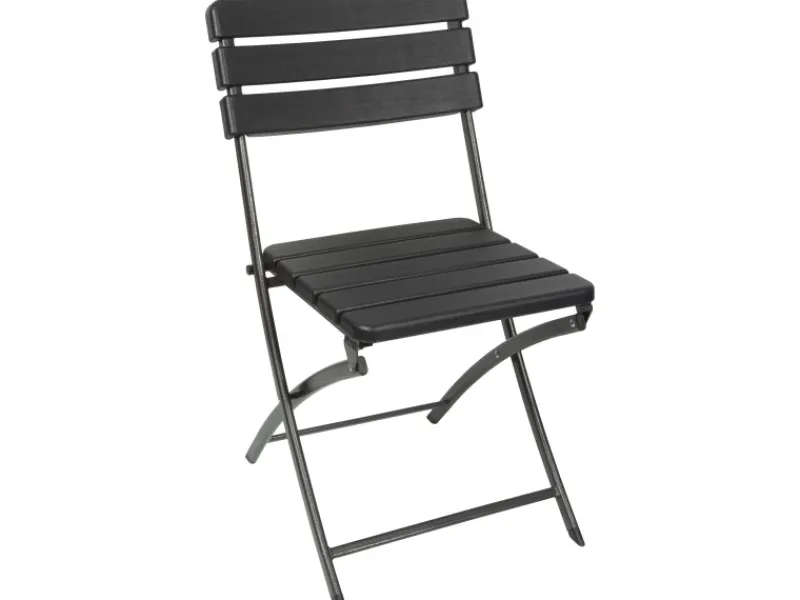 Dieser schwarze Klappstuhl in Holzoptik ist ideal für den Innen- und Außenbereich. Der Sitz aus Polyethylen ist widerstandsfähig gegen Stöße, Risse, Abplatzungen und Flecken. Der wetterfeste Stahlrahmen sorgt für gute Stabilität.