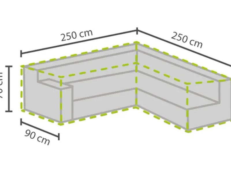 Perel Lounge-Gartenmöbel|Schutzhüllen|Garten-Schutzhülle für L-förmige Lounge-Gruppen 70 cm x 215 cm x 215 cm