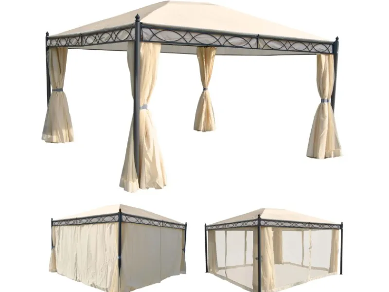 Lieferumfang 1x Pergola mit Dach, 4x Seitenwand und 4x Moskitonetz