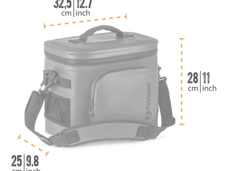 Die Petromax Kühltasche ist in drei Farben und zwei Größen erhältlich. Die kleine Kühltasche kannst du mit bis zu 4 kg Eiswürfeln und die große Kühltasche mit bis zu 10 kg Eiswürfeln füllen. 6 x 0,5 l-Flaschen bzw. 4 x 1,5 l-Flaschen finden Platz. Herausragend ist die Kühldauer der Kühltaschen: 4 bzw. 6 Tage können Abenteurer in der Natur verweilen und ein komplettes Abenteurermenü unter freiem Himmel kochen. Die Petromax Kühltaschen sind der Ausrüstungsgegenstand der deutschen Traditionsmarke, durch die du dich ganz dem Abenteuer widmen kannst und die bei keinem Draußen-Kocherlebnis fehlen.