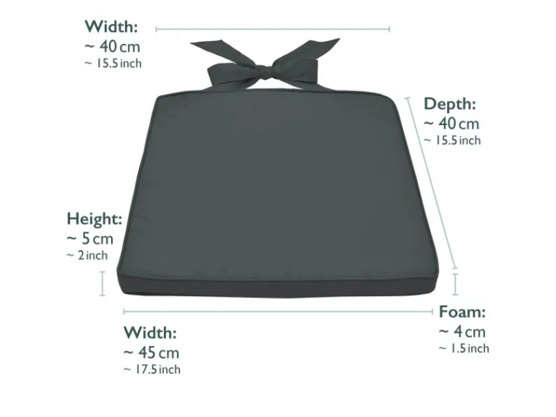 Maße:Breite: vorne ca. 45 cm, hinten ca. 40 cm Tiefe: ca. 40 cm Höhe: 5 cmBitte beachten Sie, dass die Kissen nur bedingt outdoor-geeignet sind. Dies bedeutet, dass Sie diese keinem starken Regen oder langanhaltender Feuchtigkeit aussetzen sollten.Lieferumfang:4er Set Stuhlkissen PiaProduktdetails:Marke: Beautissu Serie: Pia Material: 100% Polyester Füllung: Schaumstoffplatte 25 kg/m³ Raumgewicht Stoffqualität: 160 g/m², mit Karo-Struktur Bezug mit Reißverschluss Pflegehinweis: Bezug waschbar bis 30 Grad
